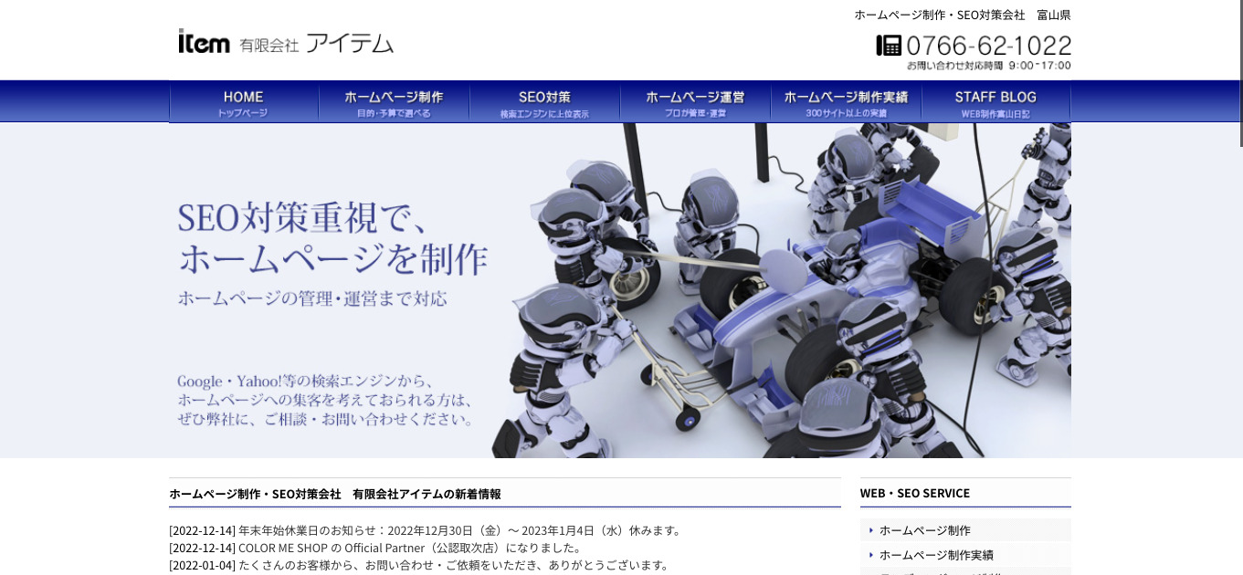 有限会社アイテムは、SEO対策を重視したホームページ制作が得意な会社です。