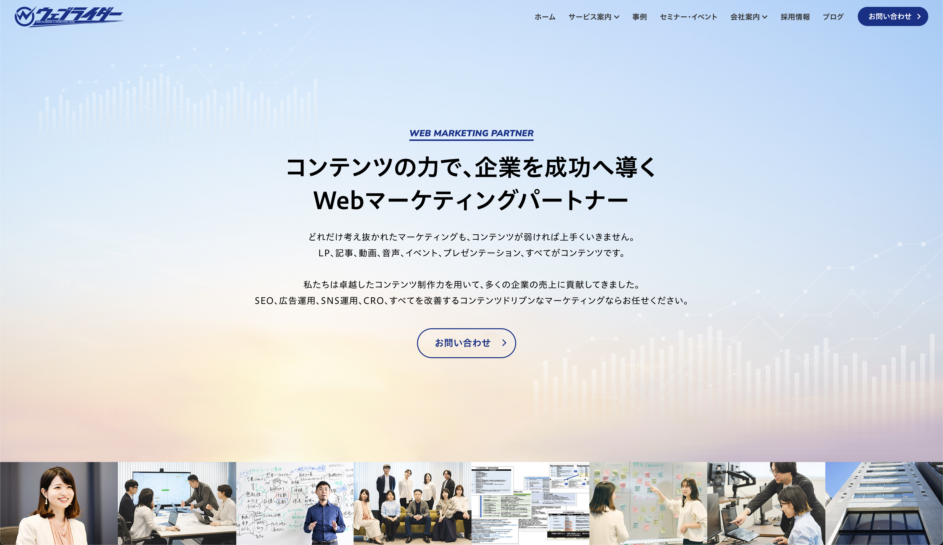 「コンテンツが上位表示されない」「アクセスはあるがCVがイマイチ獲得できない」とお悩みなら、ぜひお気軽にご相談ください。