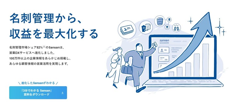 Sansanは、名刺管理機能が搭載されており、名刺や顧客情報、顧客との接点を一元管理し社内での共有が行えます。
