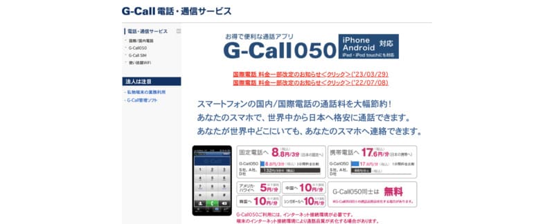ジーエーピーが運営するIP電話サービス「G-call 050」は、料金設定と機能性のバランスが良く、標準的な通話アプリです。他の通話アプリと比べると国際電話の料金が安い傾向にあるため、国内外で電話のやりとりをする機会が多い場合には通話料を節約できます。