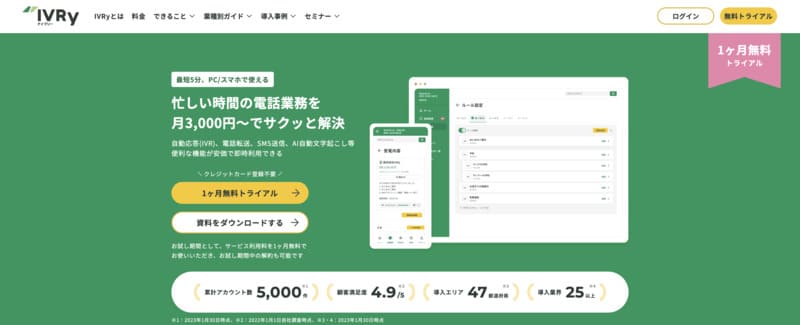 IVRyは、業務用の050番号を取得したい場合におすすめの通話アプリです。着信フロー作成・顧客管理・リスト登録など、ビジネスに必要な機能がひと通り利用できます。