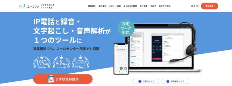 MiiTelは、テレアポが多い会社におすすめです。人工知能を搭載したクラウドIP電話で、過去の通話履歴を分析して、電話対応の改善点を見つけ出すことができます。電話営業をすることが多い場合は、導入を検討してみるのも良いでしょう。