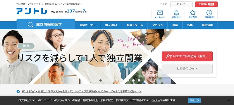 アントレは、独立や開業、フランチャイズ、代理店を目指す人のための情報サイトです。