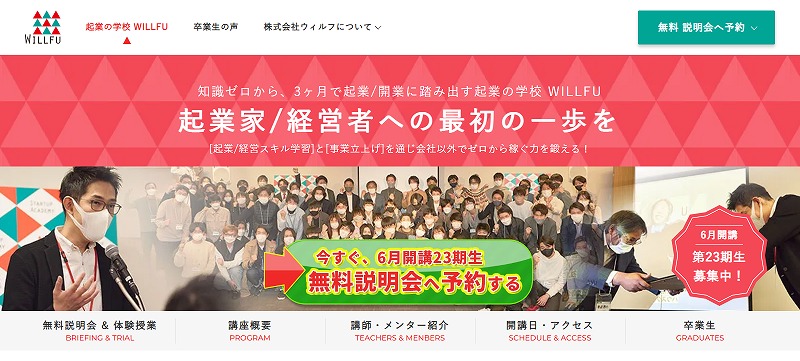WILLFU(ウィルフ)は、働きながら3ヶ月で起業へ踏み出す実践型起業スクールです。
