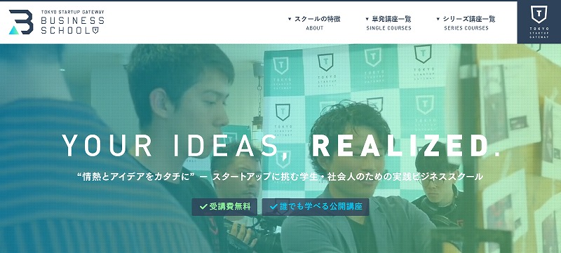 TSGビジネススクールは、東京都が主催している無料の起業スクール。誰でも学習できる公開コンテンツが充実しています。