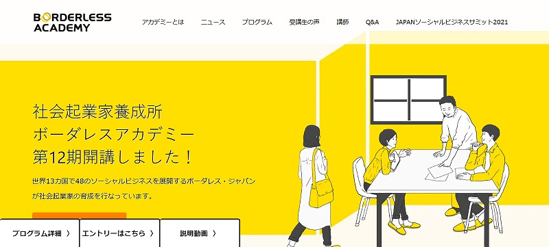 ボーダレスアカデミーは、社会問題を解決する社会起業家を育成するソーシャルビジネススクールです。