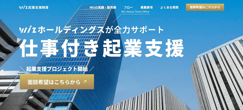 Wizは、起業や独立を目指す人を対象にした仕事つきの起業支援サービスです。