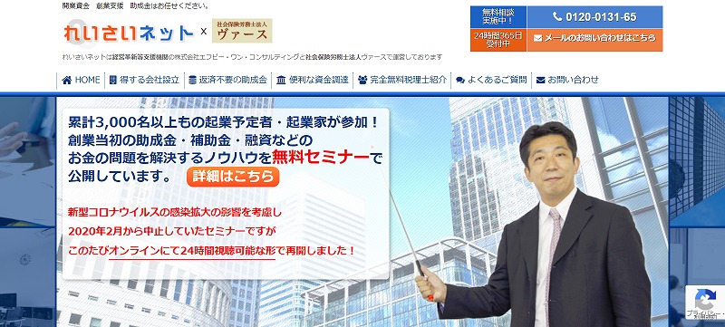 れいさいネットは、起業当初の資金調達や助成金、補助金、融資の相談支援をするサービスです。